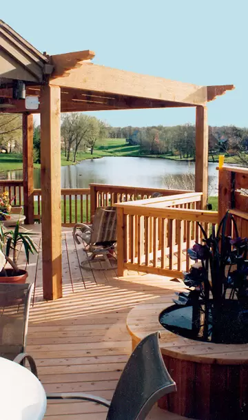 Essential Extras, Inc. creates unique outdoor spaces and structures like screened porches, gazebos, pergolas and shade arbors. Our pergola and arbor designs usually have to work with gardens and landscaping as well as with patio and deck designs; and we design them to match the scale, look, style and flow of the area. Our portfolio has thousands of pictures of wooden decks (and some plastic and composite decking). We also do most types of residential remodeling from small repairs to major projects like room additions and basement refinishing.