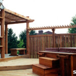 Adding a spa adds several considerations to the deck design. Functionally, hot tubs and spas are mostly for fun and entertaining or for therapy (or both.) We always start with function in creating a design. Hot tubs and spas (and their covers when off) take up more space than most people realize; so decks with spa areas tend to be bigger. It is very important to locate the spa carefully so that it is in a good strategic location in terms of privacy and view, structural requirements and traffic flow. Most of the time, our clients want a certain view as well as privacy screening; so locating the spa becomes a matter of “threading the needle.” Structural support is rarely much of a technical challenge although it does make it harder to make the area under an upper deck look good. We have been pretty successful in creatively and artistically handling such things.