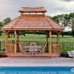 Although most gazebos have eight sides, some are square, and a few are rectangular. We have only done one with six sides. The majority of our gazebos have been 12’ octagons. This is big enough to be useful and small enough to be cost effective.